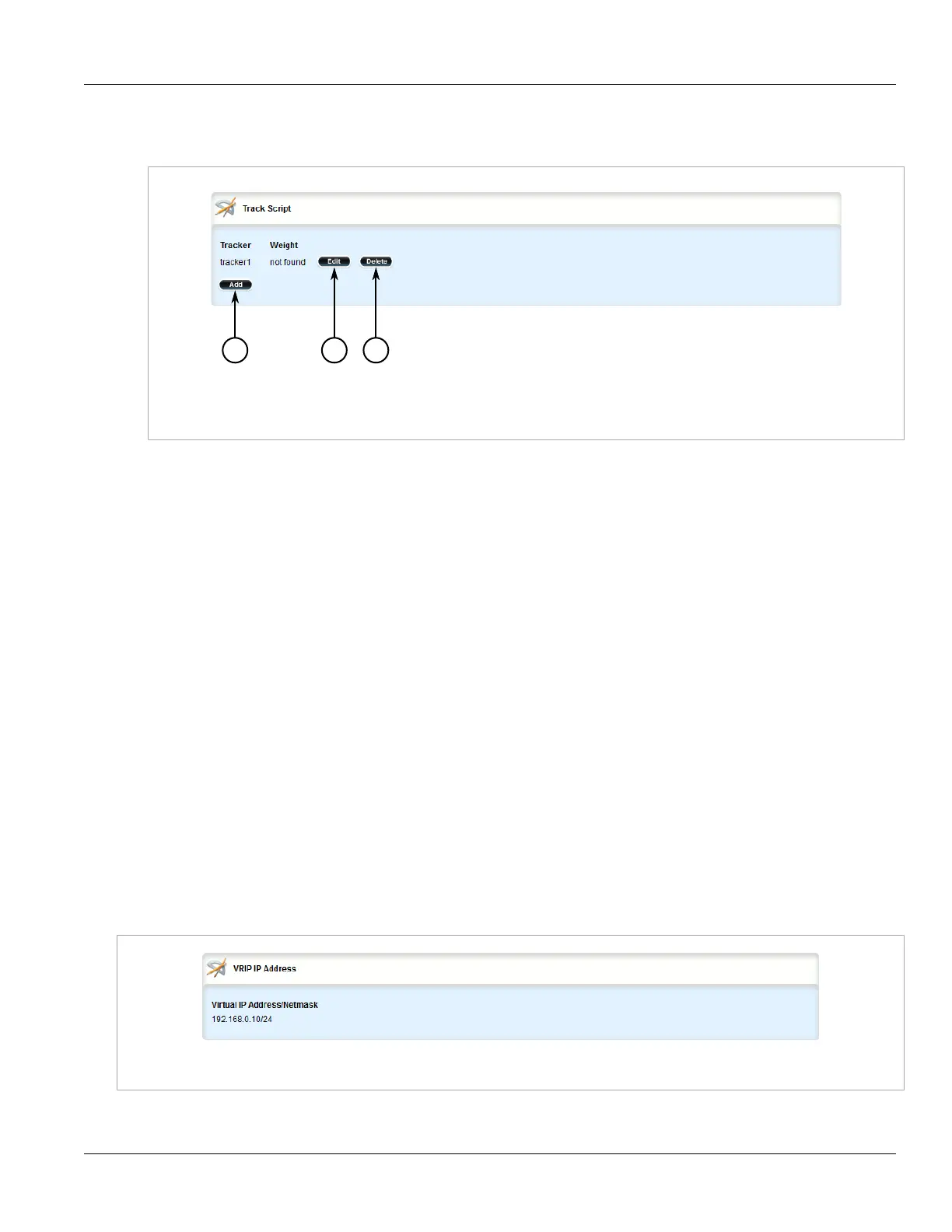 2. Navigate to services » vrrp » instance » {name} » track-script, where {name} is the name of the VRRP