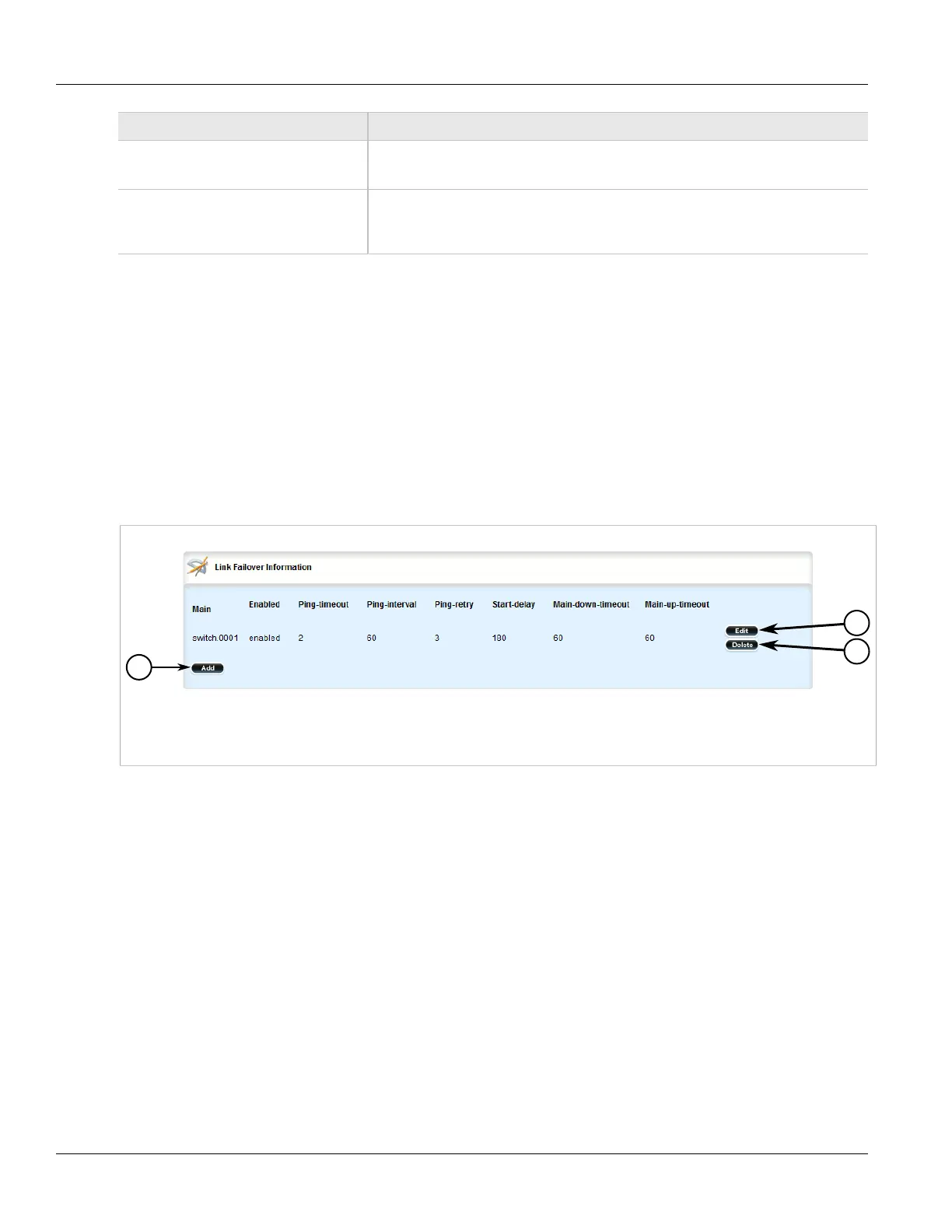 Figure 706: Link Failover Information Table