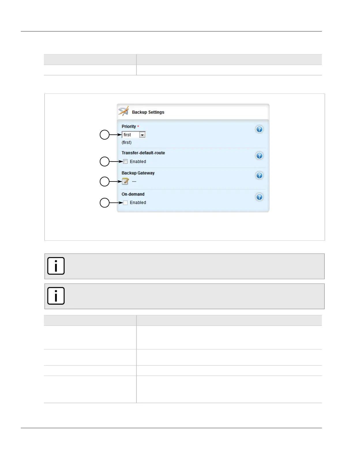1. Priority List 2. Transfer Default Route Check Box 3. Backup Gateway Box 4. On Demand Check Box