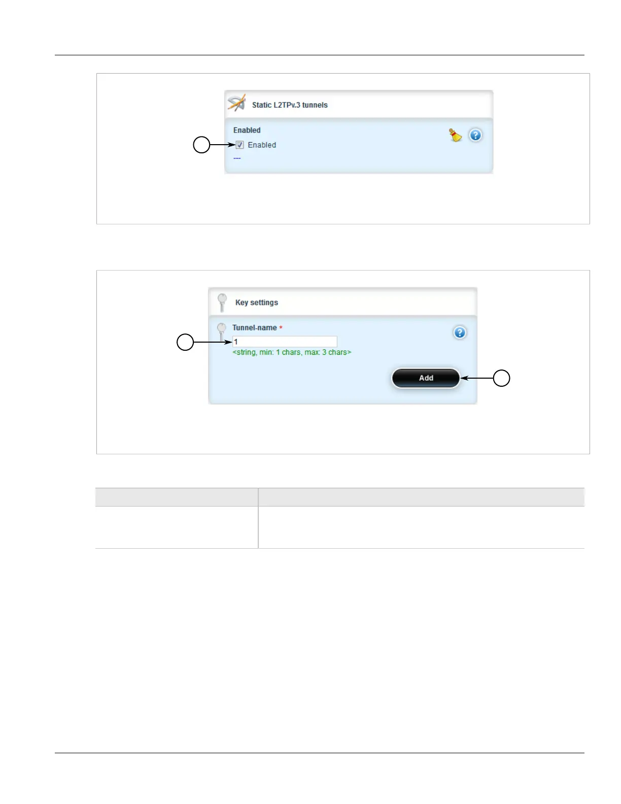 4. Navigate to tunnel » l2tpv3 » static » tunnel and select Add tunnel. The Key Settings form appears.