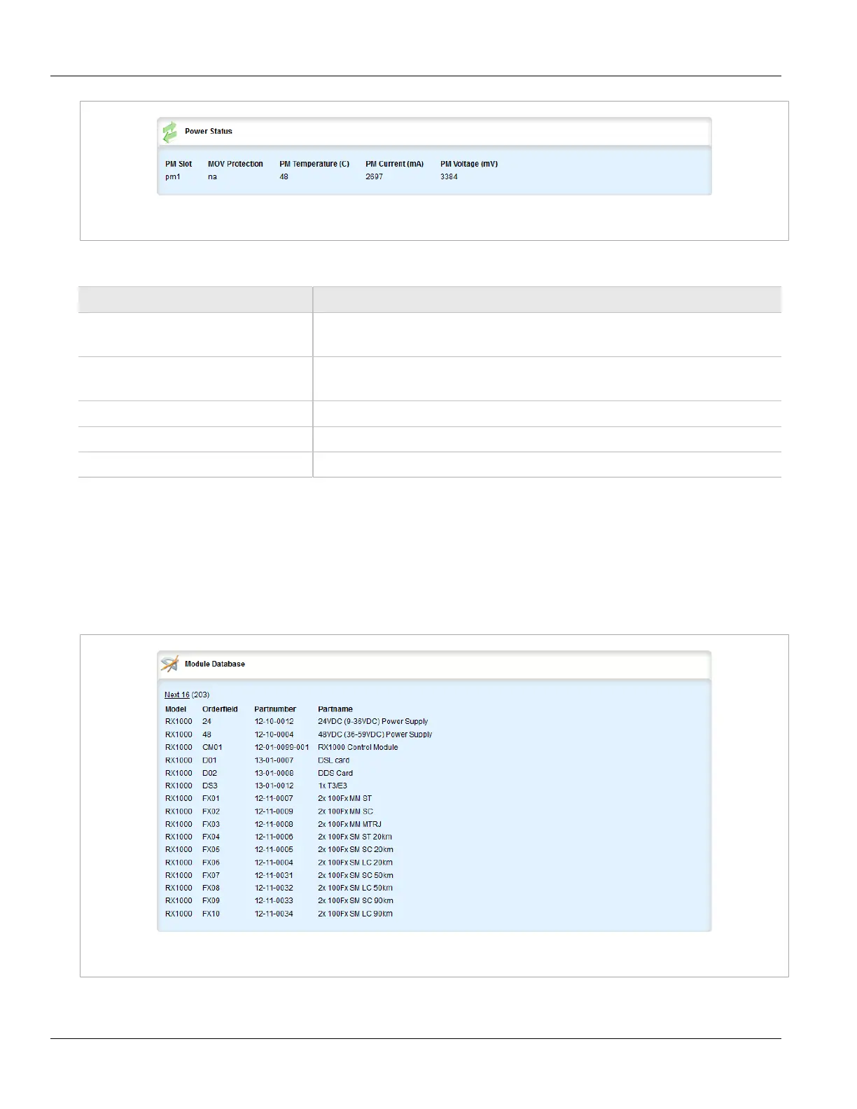 Figure 25: Power Status Table