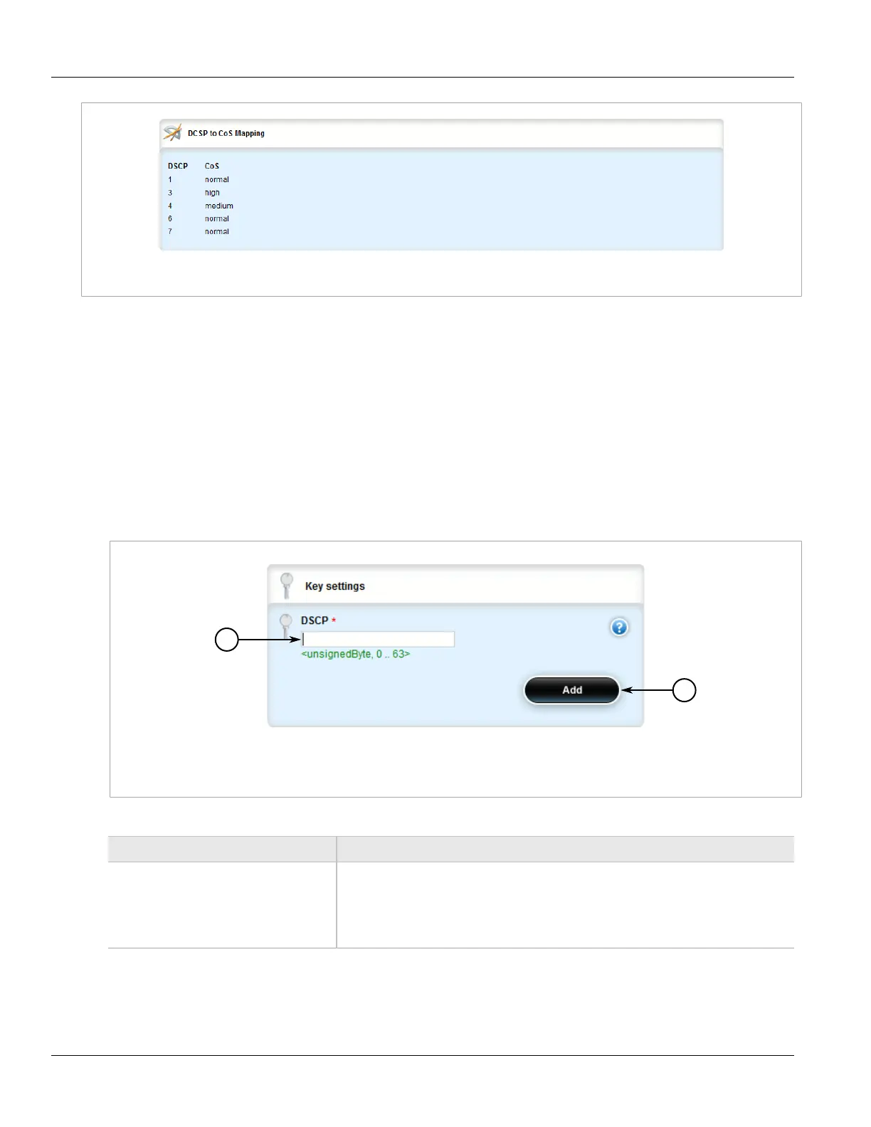 1. DSCP Box 2. Add Button