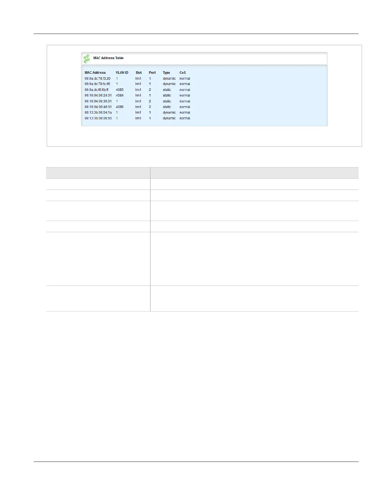 • DYNAMIC: The address has been automatically learned by the switch and can be