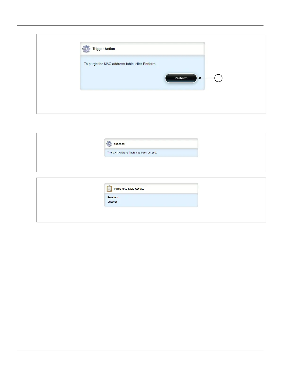 2. Click the Perform button. Once the table is purged, the Success! and Purge MAC Table Results forms