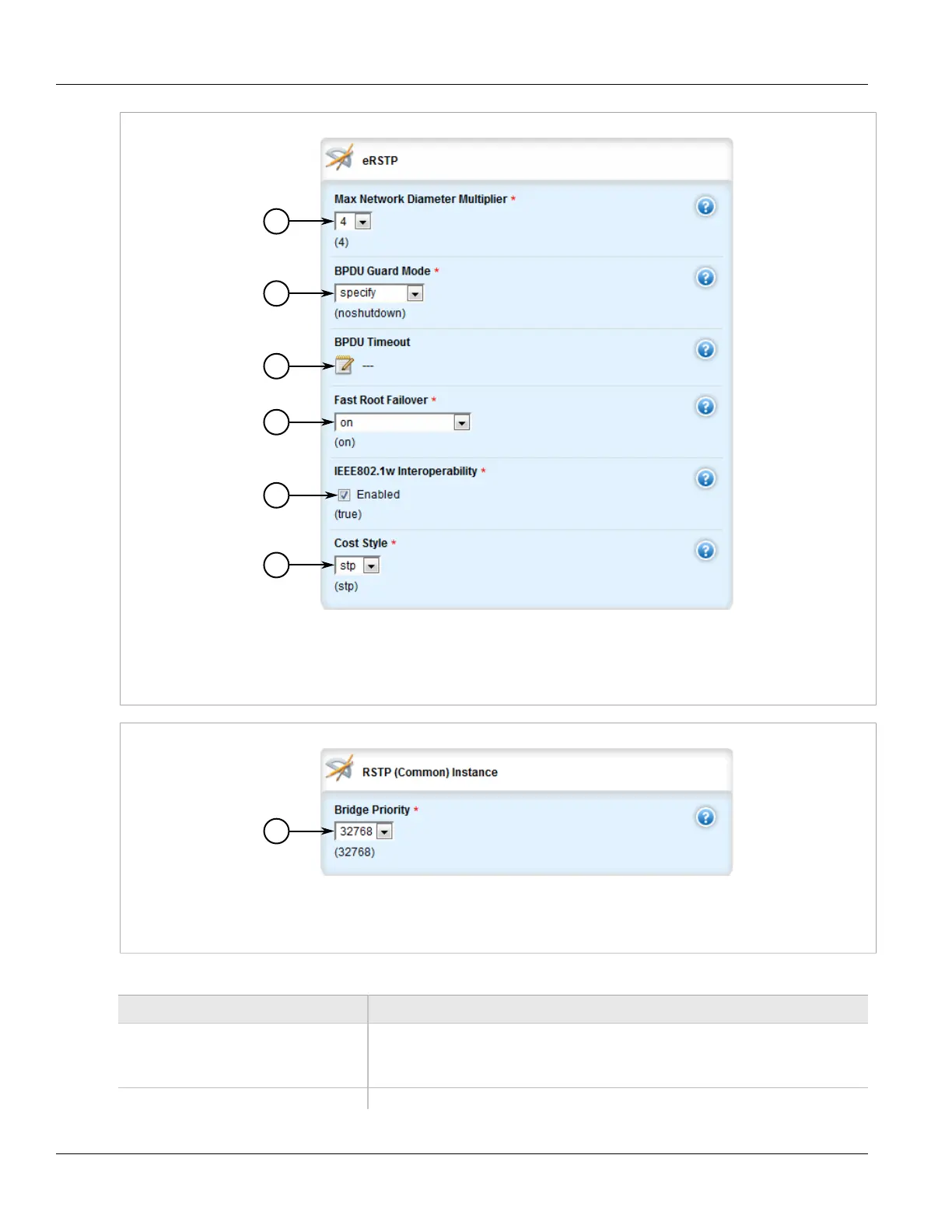 1. Max Network Diameter Multiplier List 2. BPDU Guard Mode List 3. Fast Root Failover List 4. IEEE802.1w Interoperability