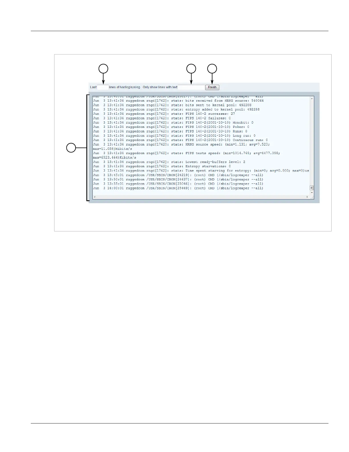 1. Last Box 2. Text Filter Box 3. Fresh Button 4. Log Window