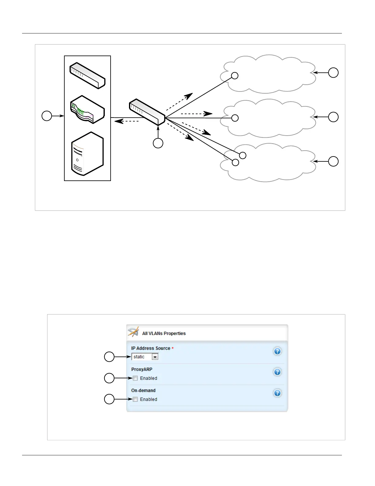 1. IP Address Source List 2. ProxyARP Check Box 3. On-Demand Check Box
