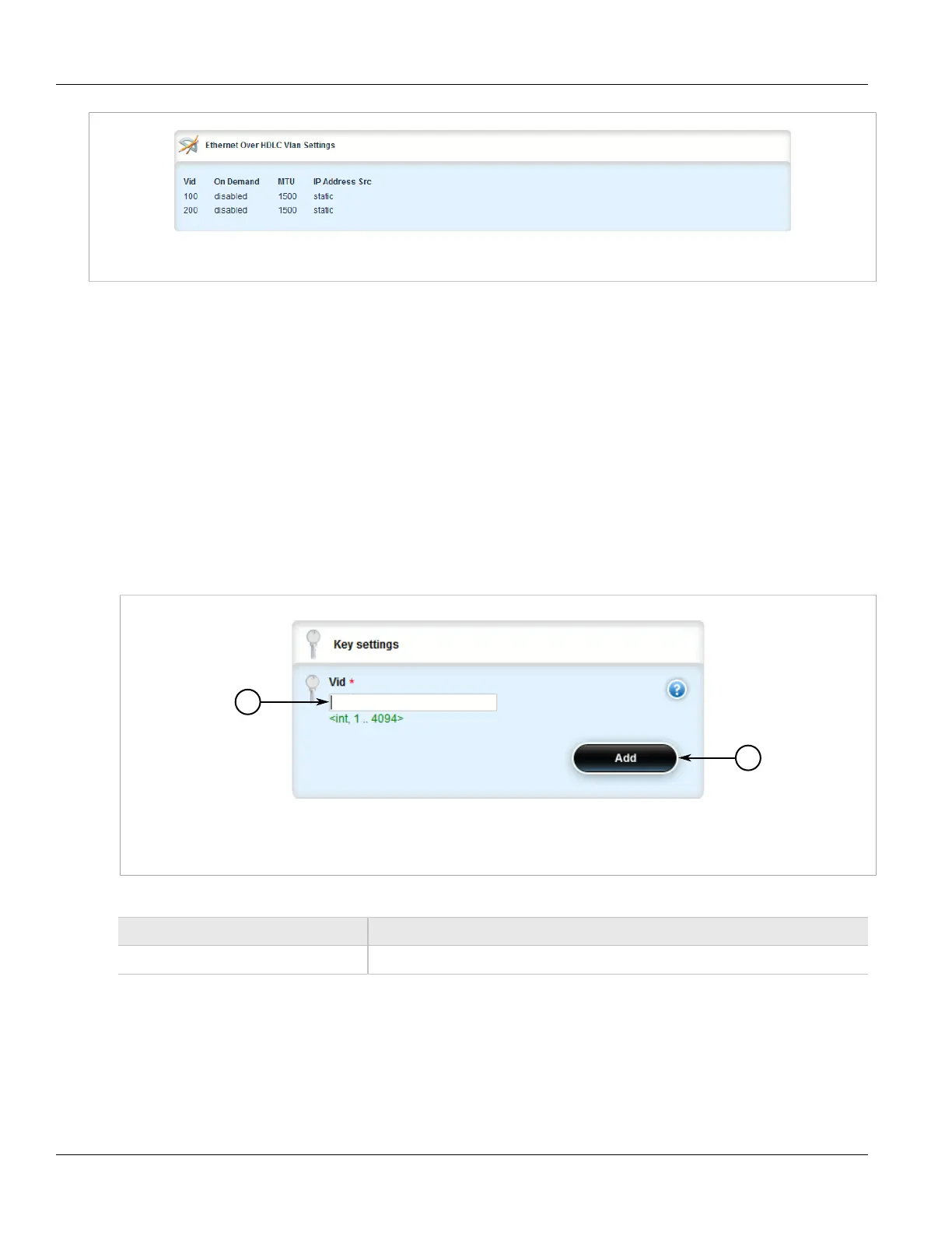 3. Click <Add vlan>. The Key Settings form appears.