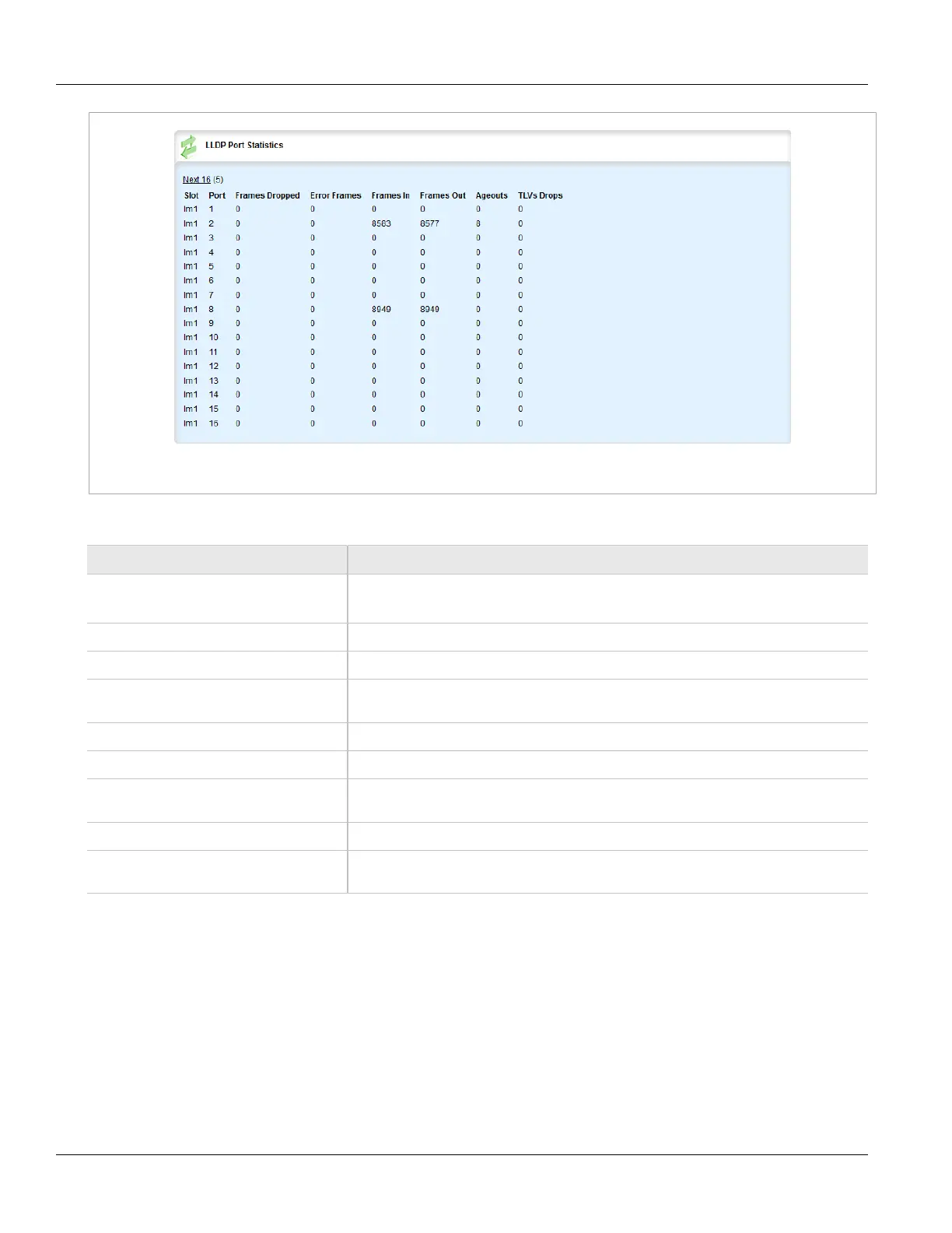 Frames Dropped A counter of all Link Layer Discovery Protocol (LLDP) frames discarded.