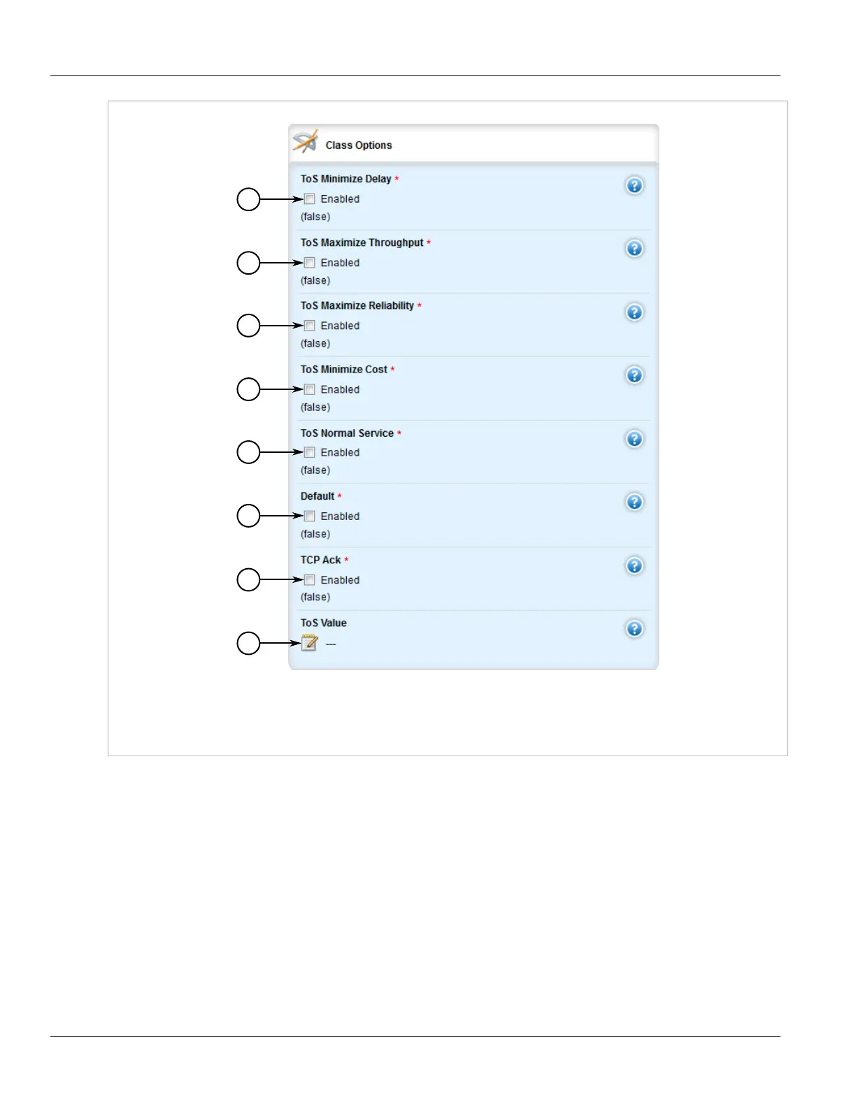 Minimize Cost Check Box 5. ToS Normal Service Check Box 6. Default Check Box 7. TCP Ack Check Box 8. ToS Value Box