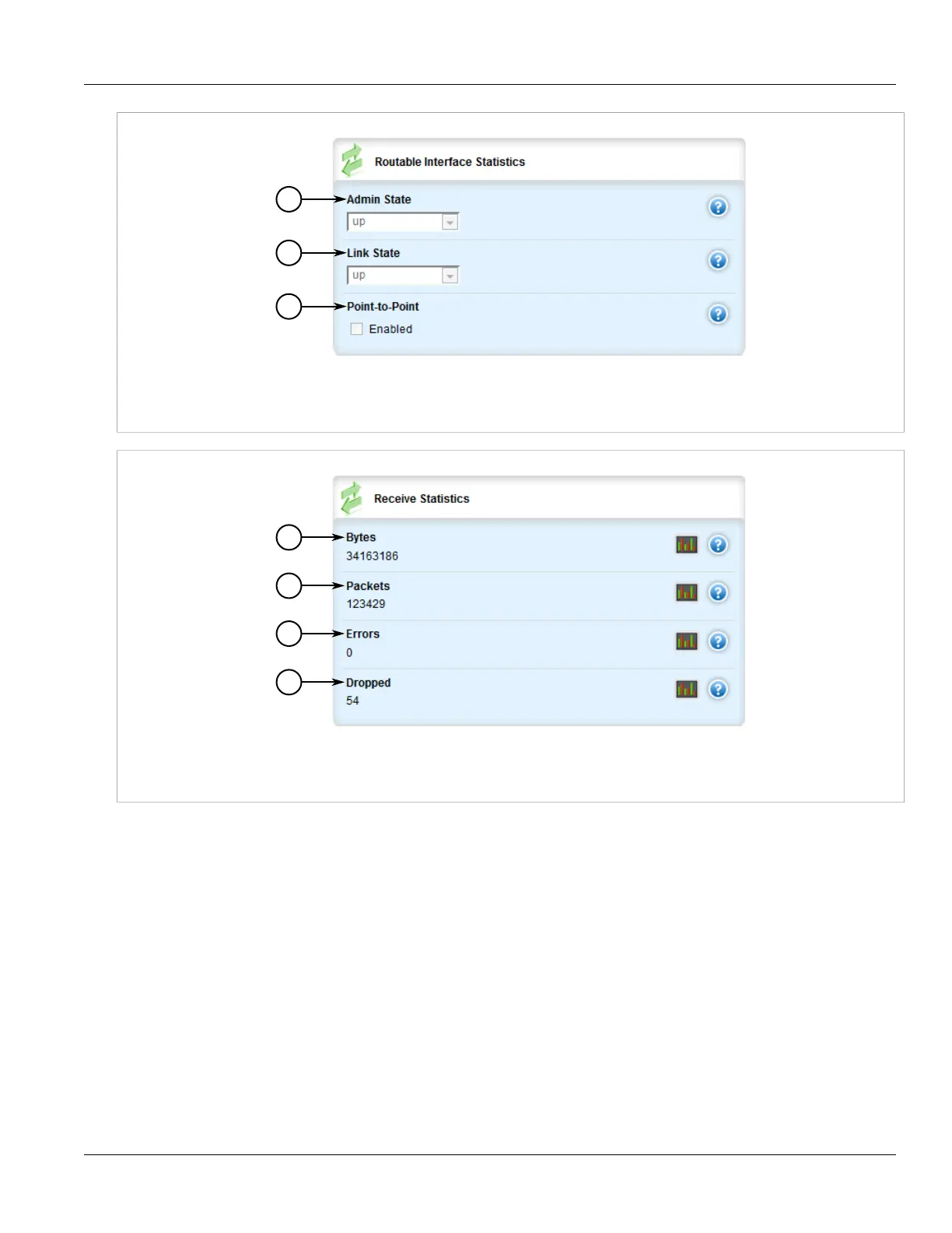 1. Bytes 2. Packets 3. Errors 4. Dropped