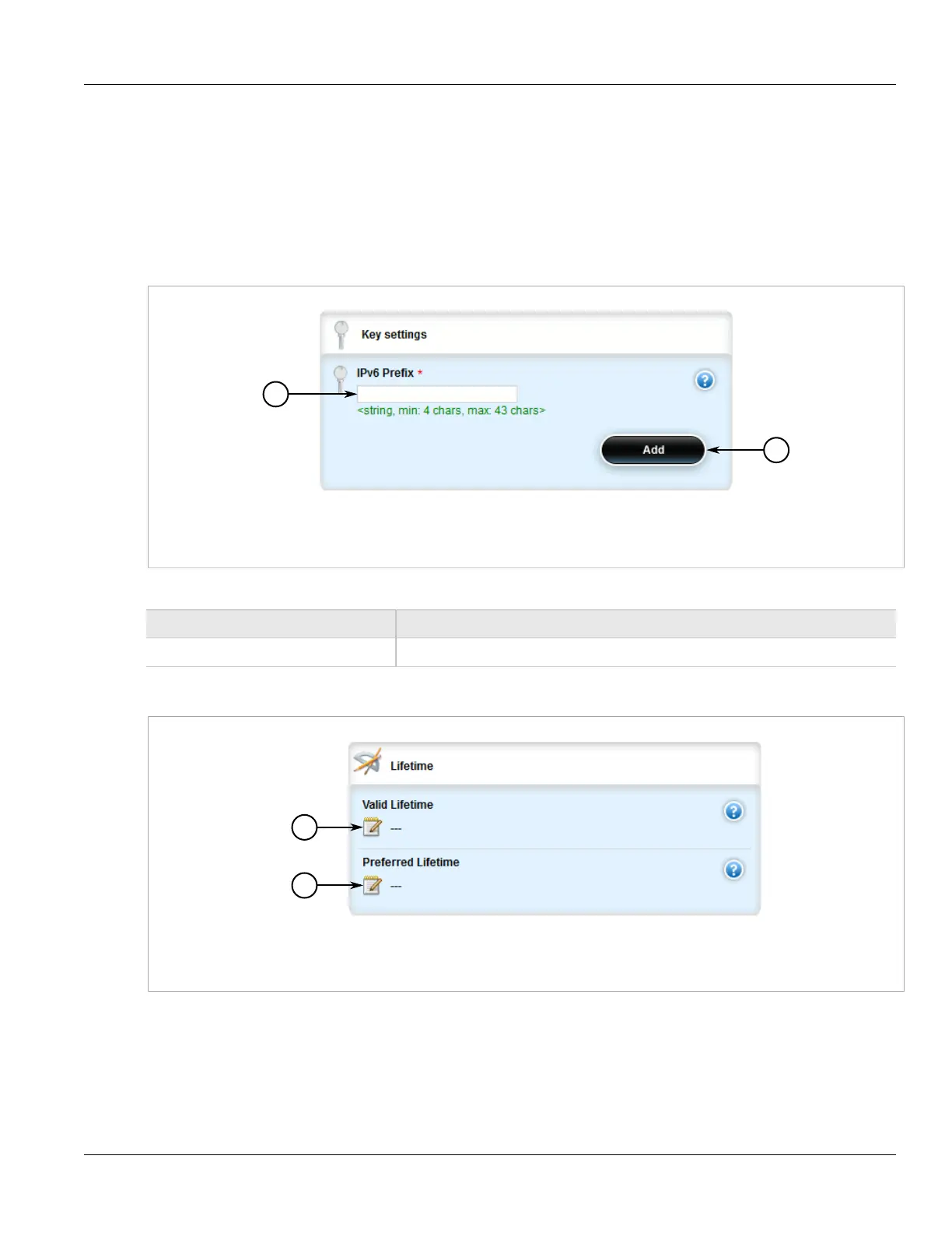 5. Click Add to add the network prefix. The Lifetime and Prefix forms appear.