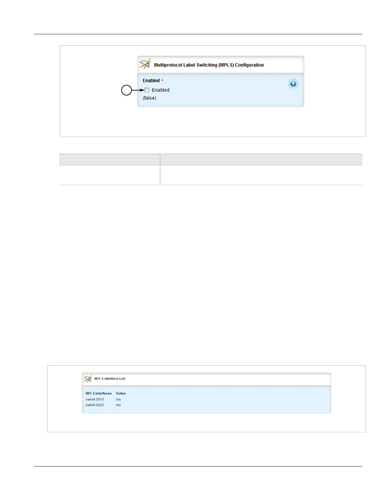 interfaces have been enabled on the device, the MPLS Status Interface List table appears.