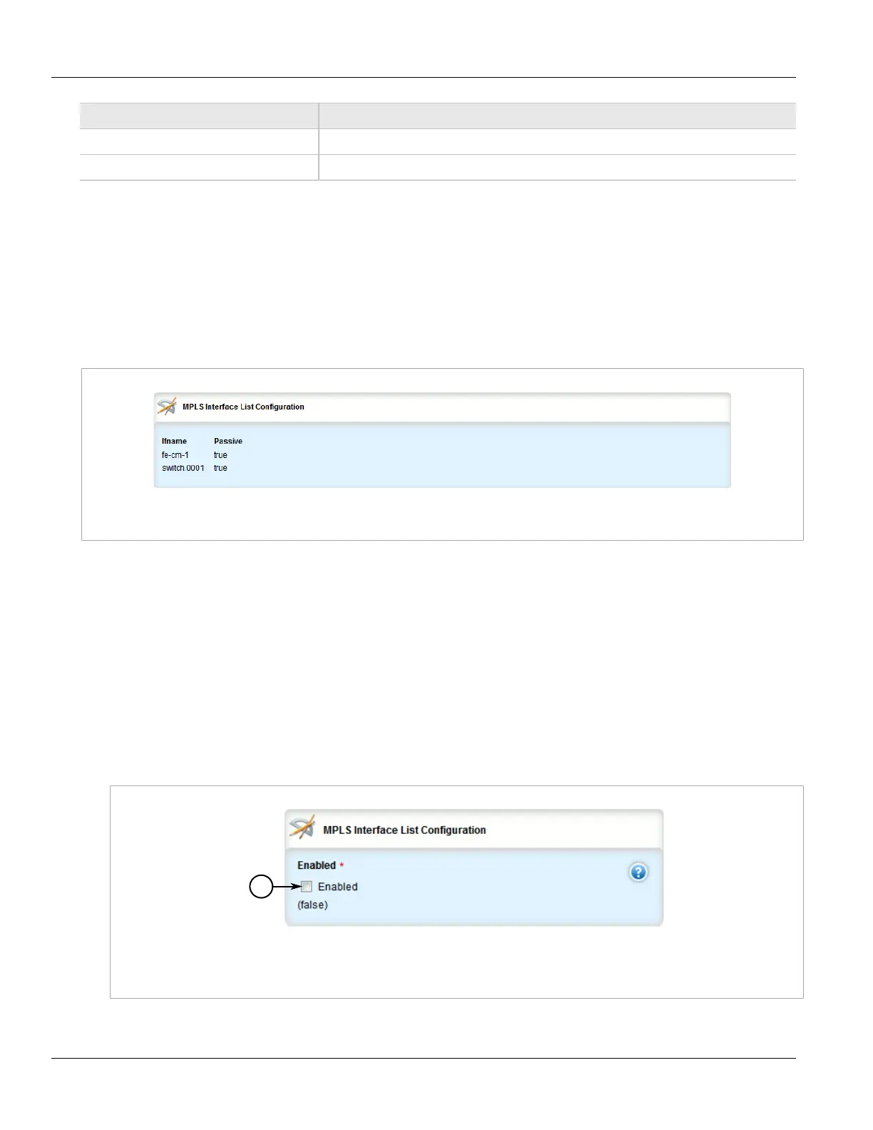 Figure 927: MPLS Interface List Configuration Table