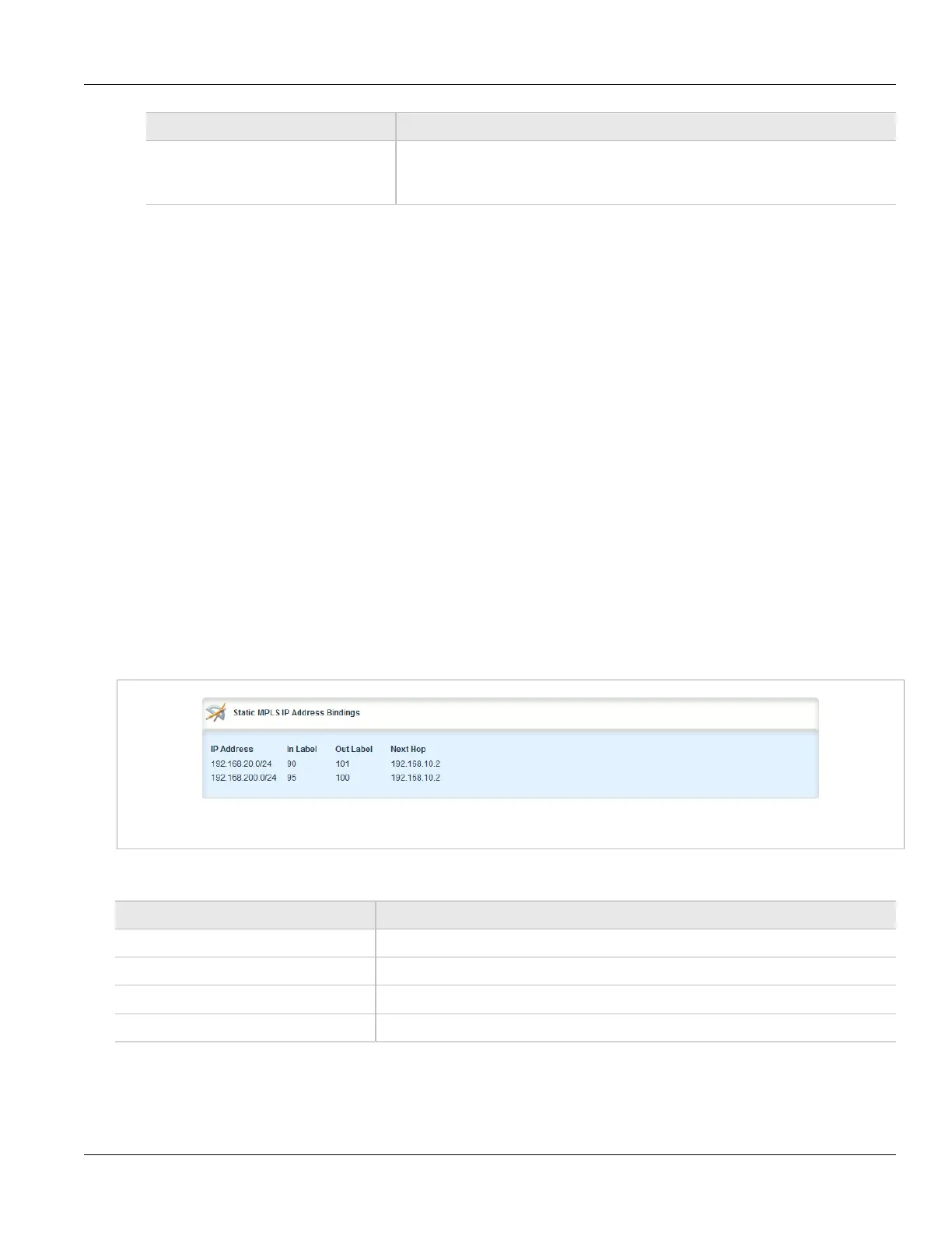 binding has been configured, the Static MPLS IP Address Bindings table appears.