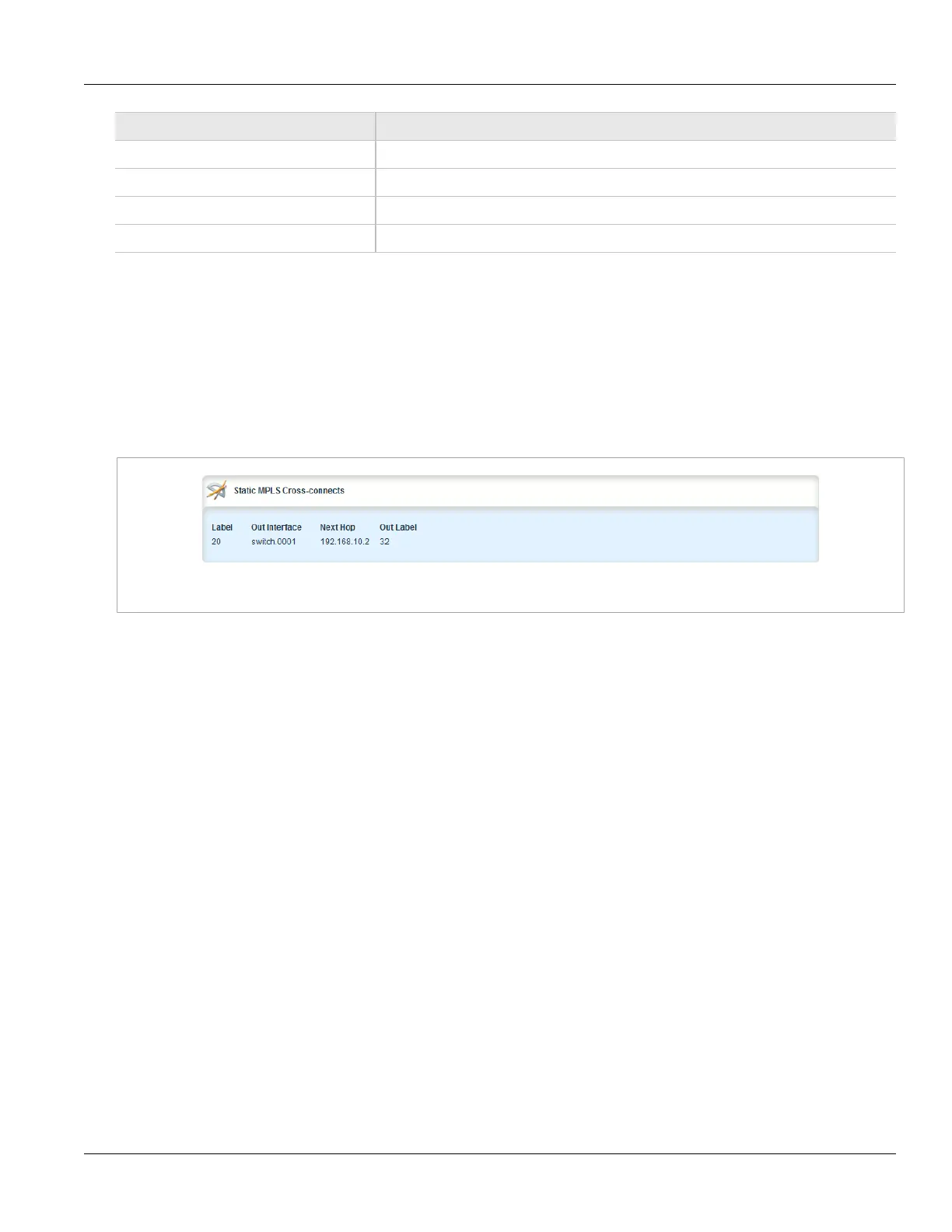 connect labels have been configured, the Static MPLS Cross-Connects table appears.