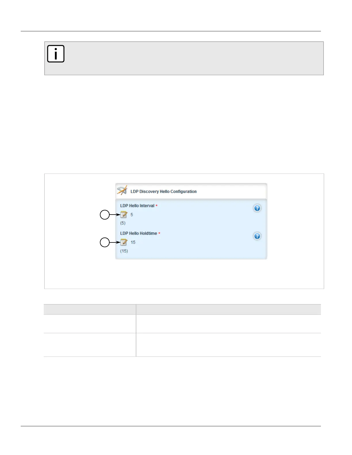 1. LDP Hello Interval Box 2. LDP Hello Holdtime Box