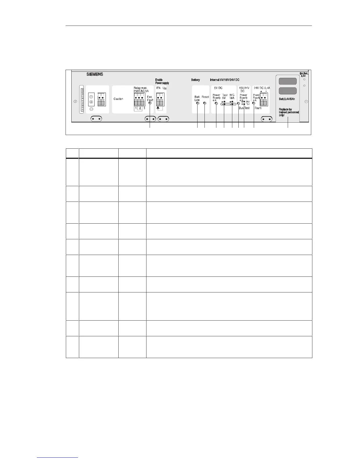 1 Fan Fault Red LED The LED lights up to indicate a fan fault. The PSU then switches off (jumper