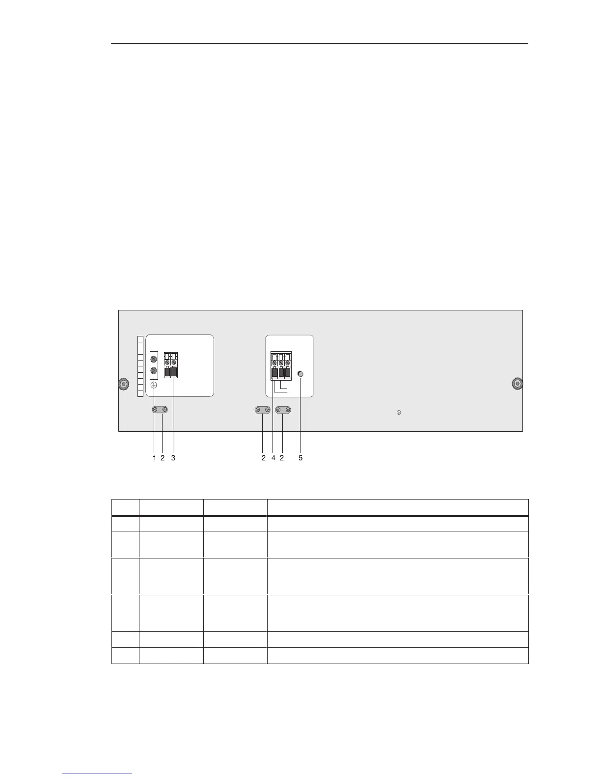 The following terminals and LEDs are fitted on the front plate (the front