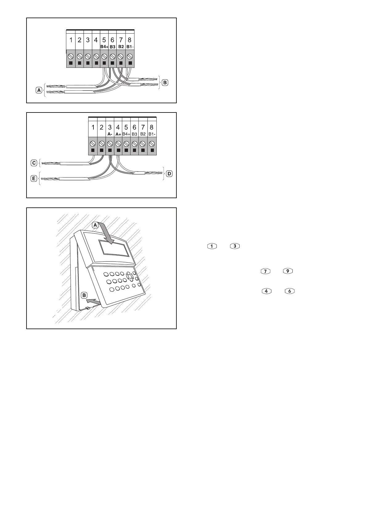 Connect terminals A- and A+ to the central control unit (E) (e.g.