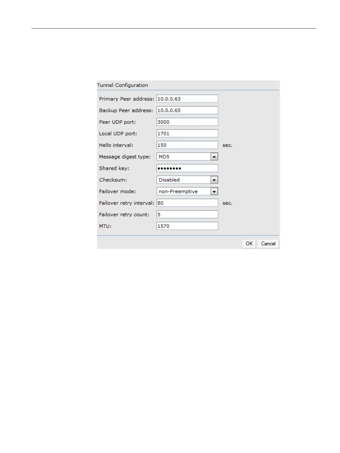 Enter the interval at which the hello packets are sent through the tunnel in the