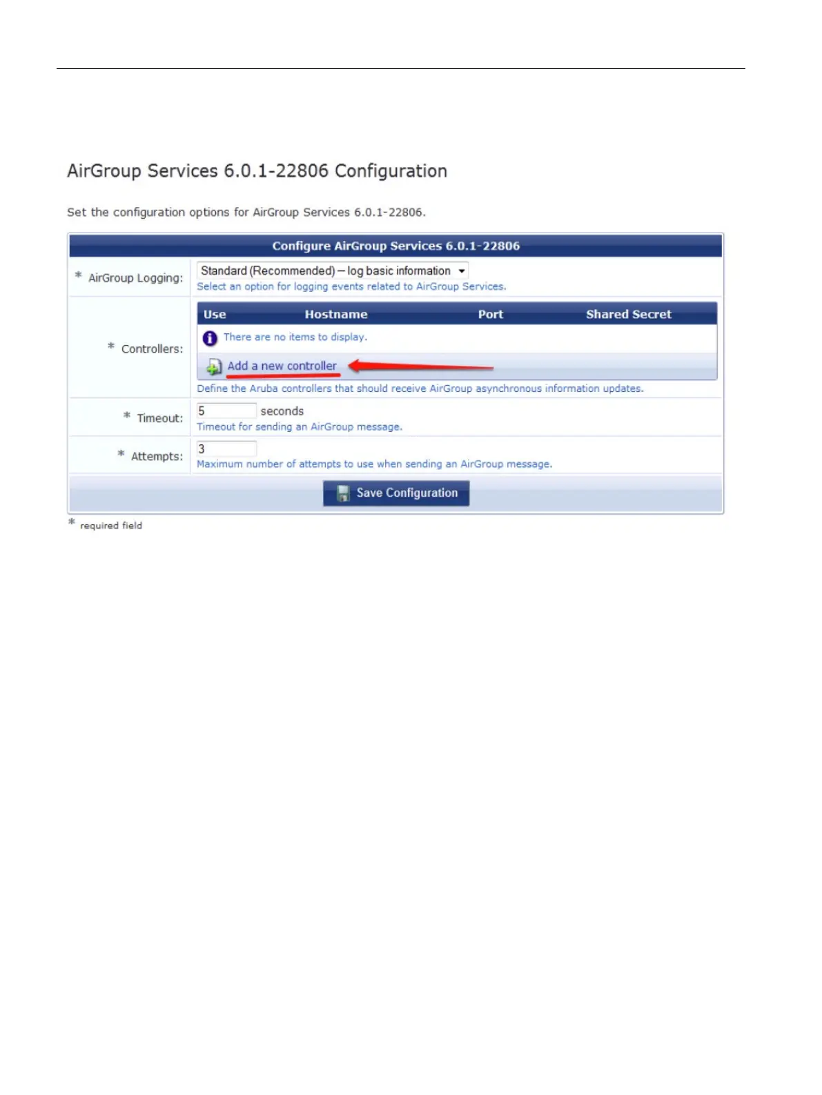 Figure 34-2 Add a New Controller for AirGroup Services