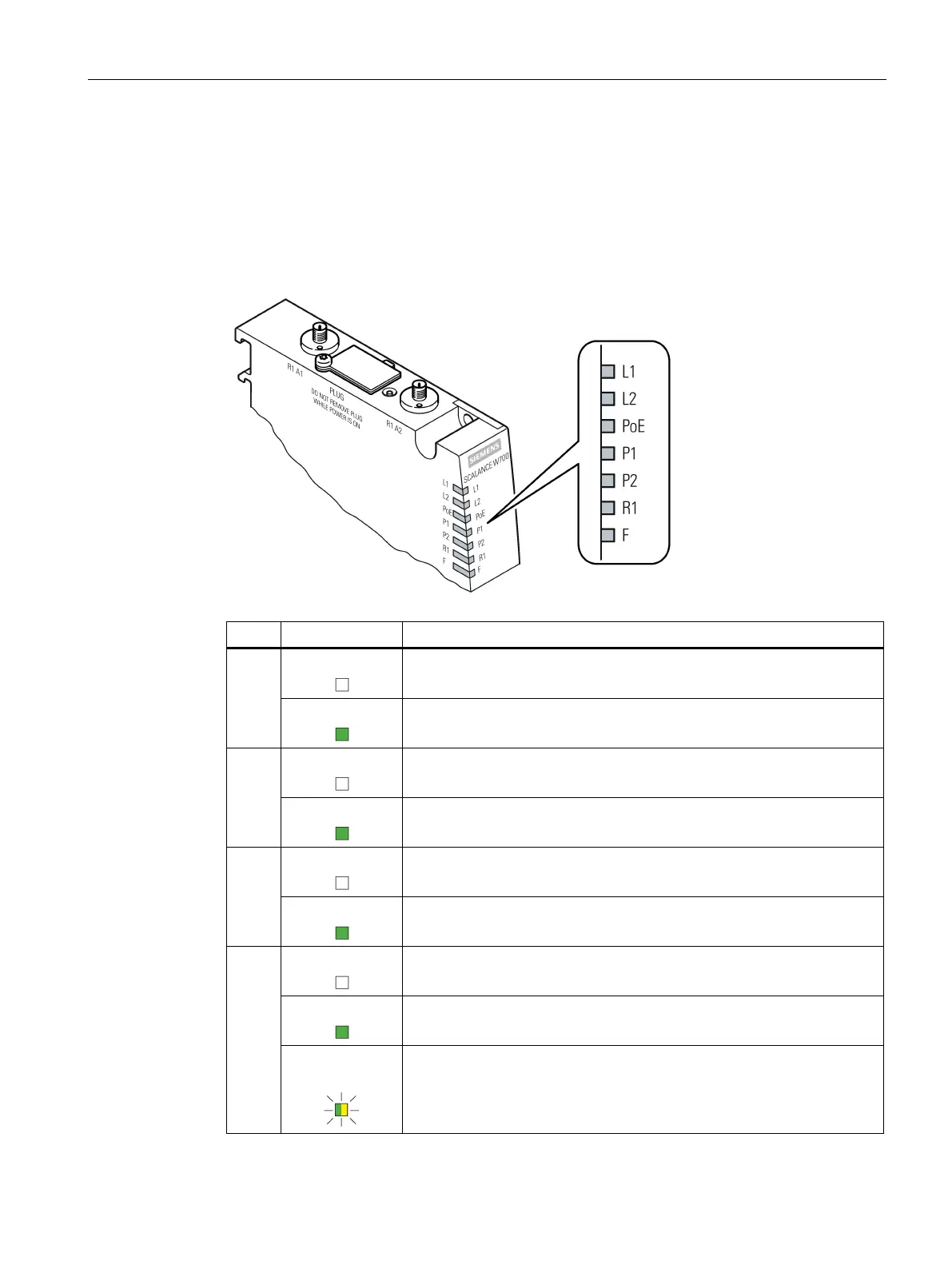 On the front of the housing, several LEDs provide information on the operating status of