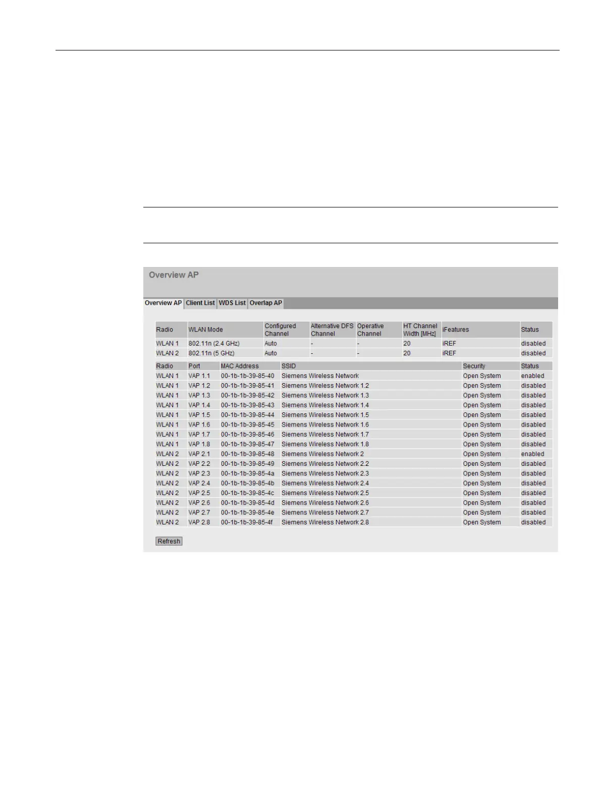 This page shows these settings/properties of the WLAN or the WLAN interface.
