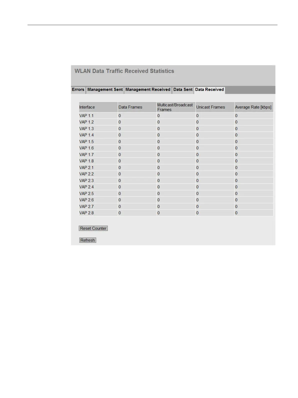 The WBM page shows how many frames were received per VAP interface.