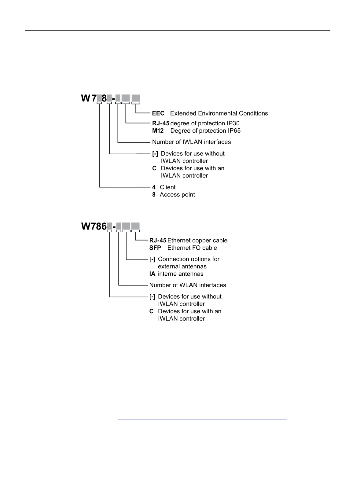 The type designation of a SCALANCE W700 is made up of several parts that have the