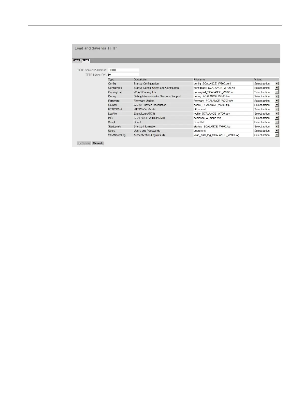 With this selection, you load a file from the TFTP server.