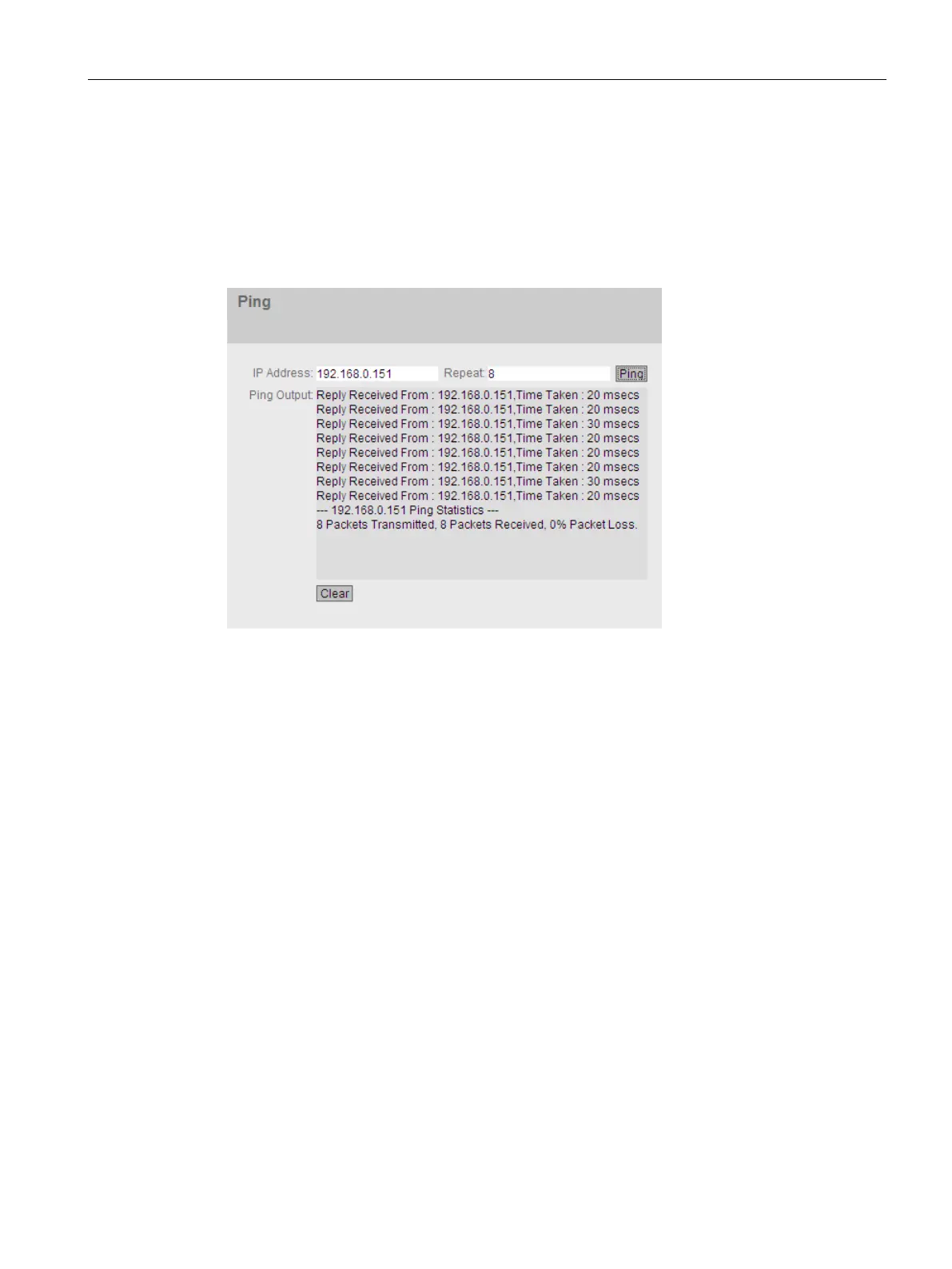Click this button to empty the "Ping Output" box.