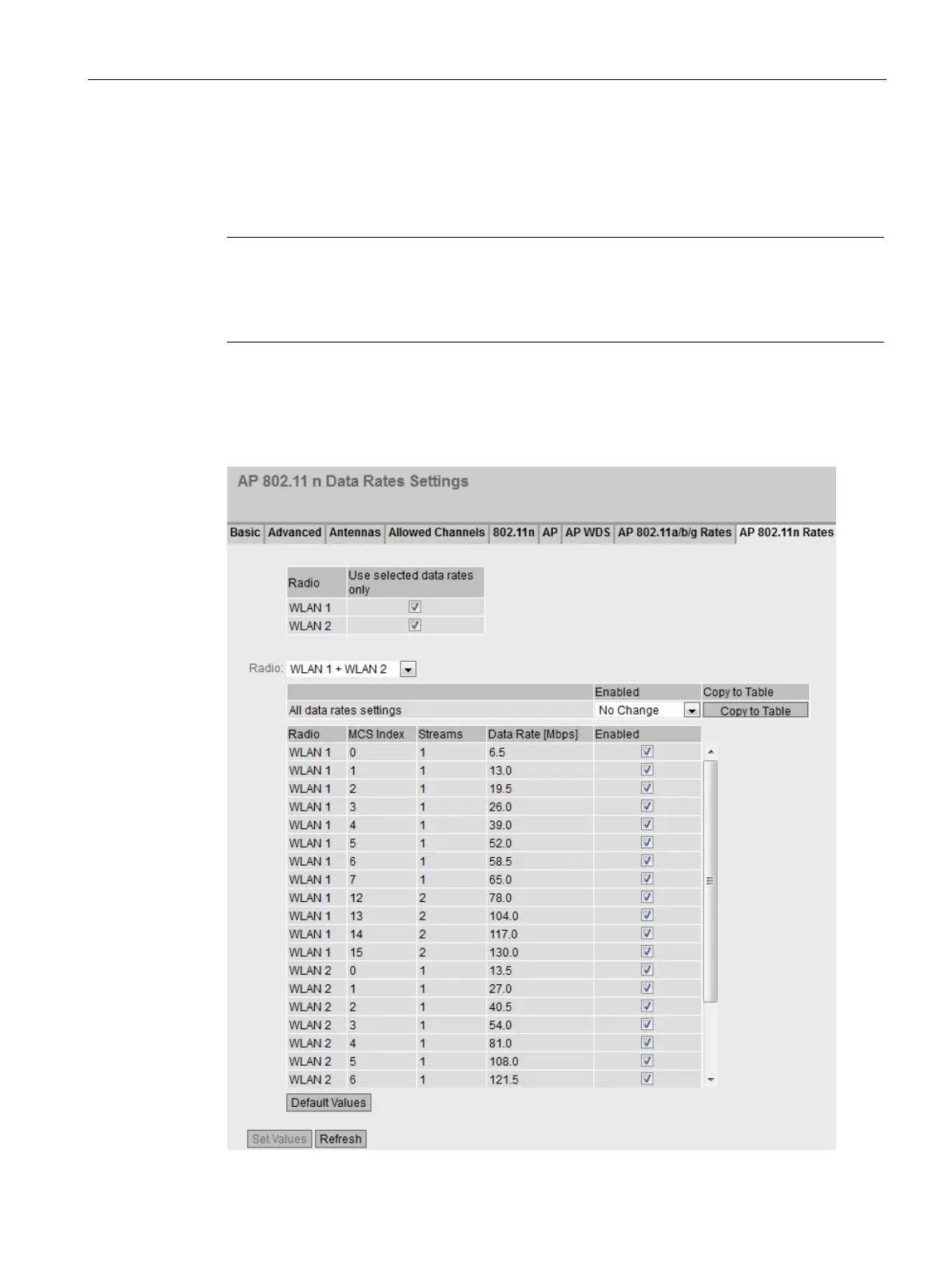 Coding Schemes) for the WLAN mode 802.11n. You can select any combination of these
