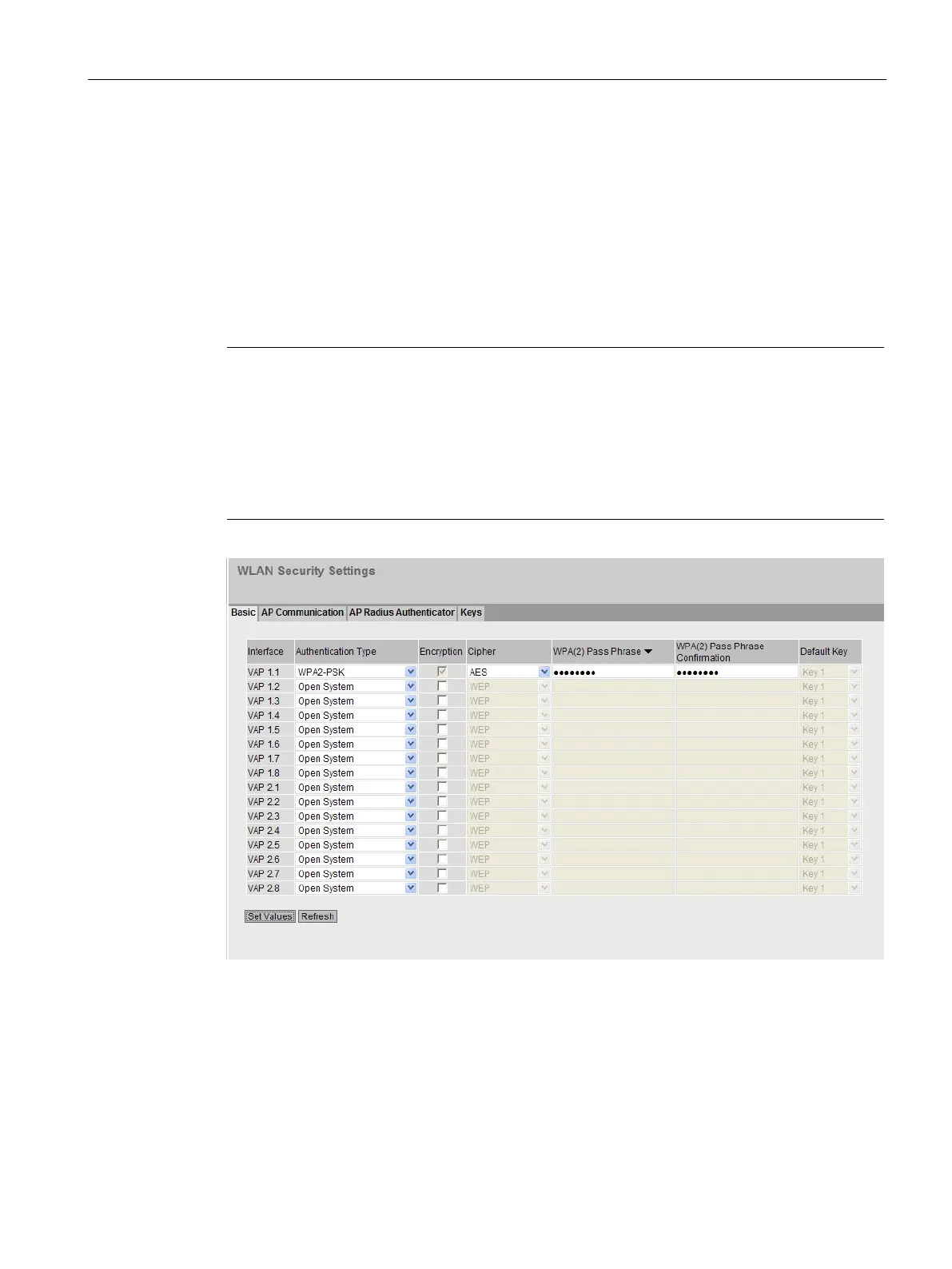 or iPCF-MC mode is enabled, only "Open System" with the encryption method AES