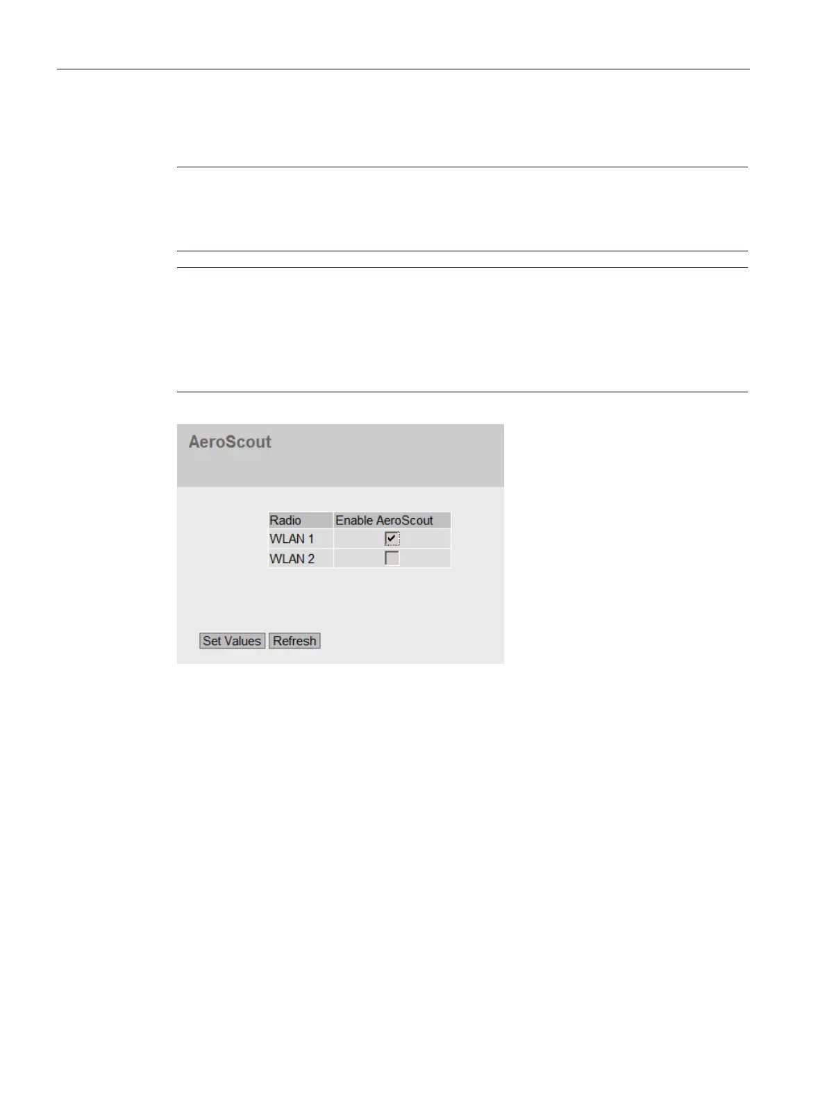 Enable or disable AeroScout for the required WLAN interface. The result is shown in