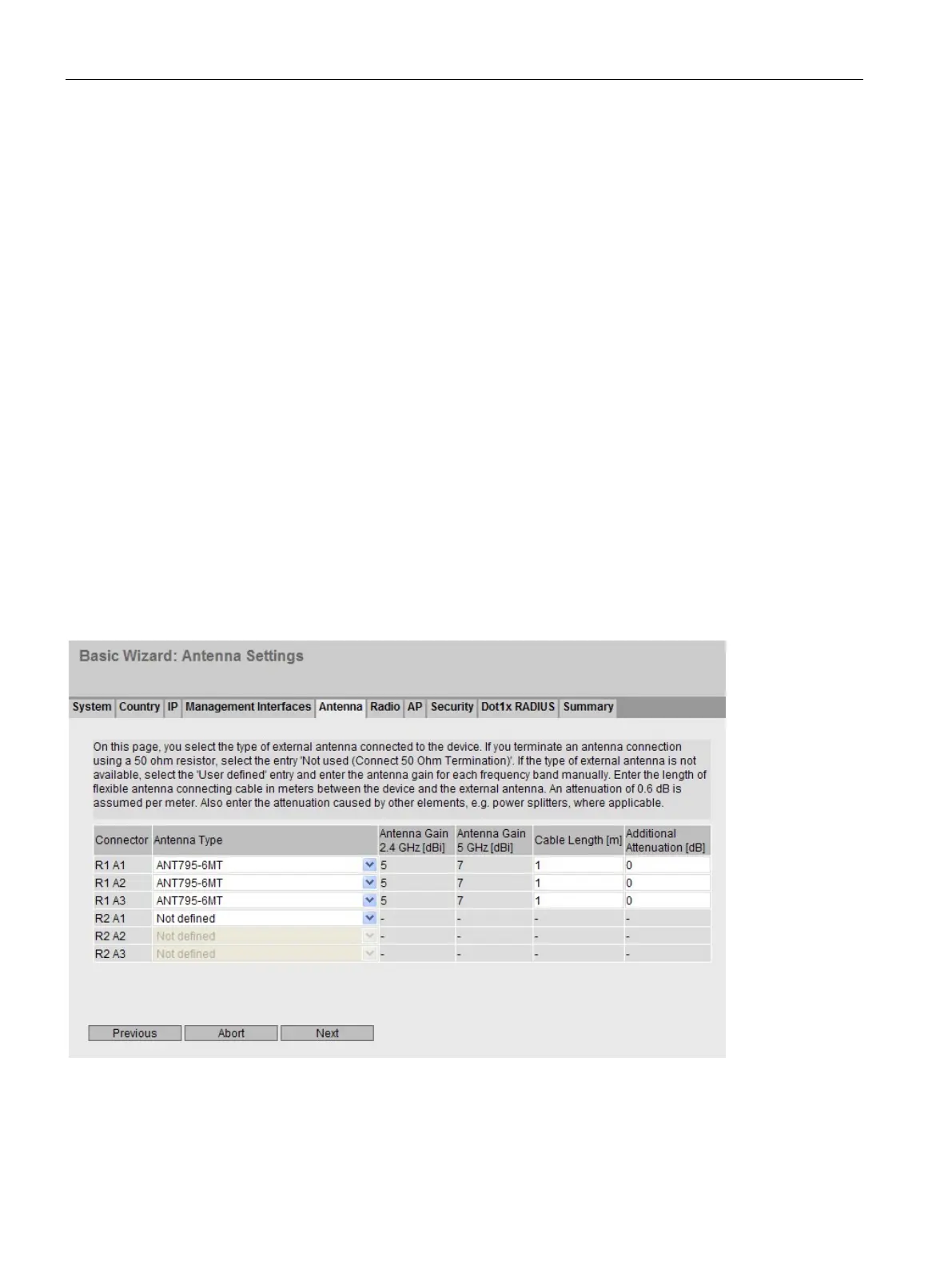 On this Basic Wizard page, you configure the settings for the external antenna.