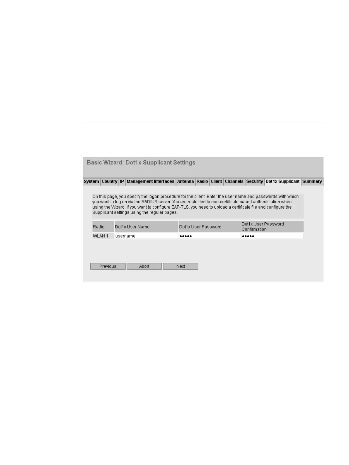 Basic Wizard with "Security > WLAN > Client Radius Supplicant".