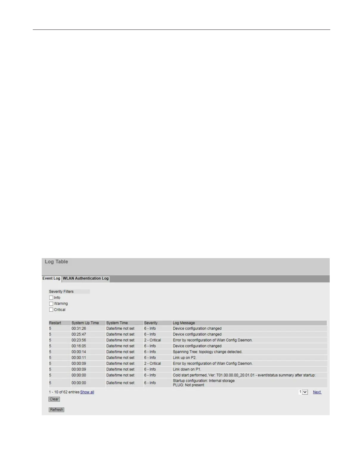The content of the events log table is retained even when the device is turned off.