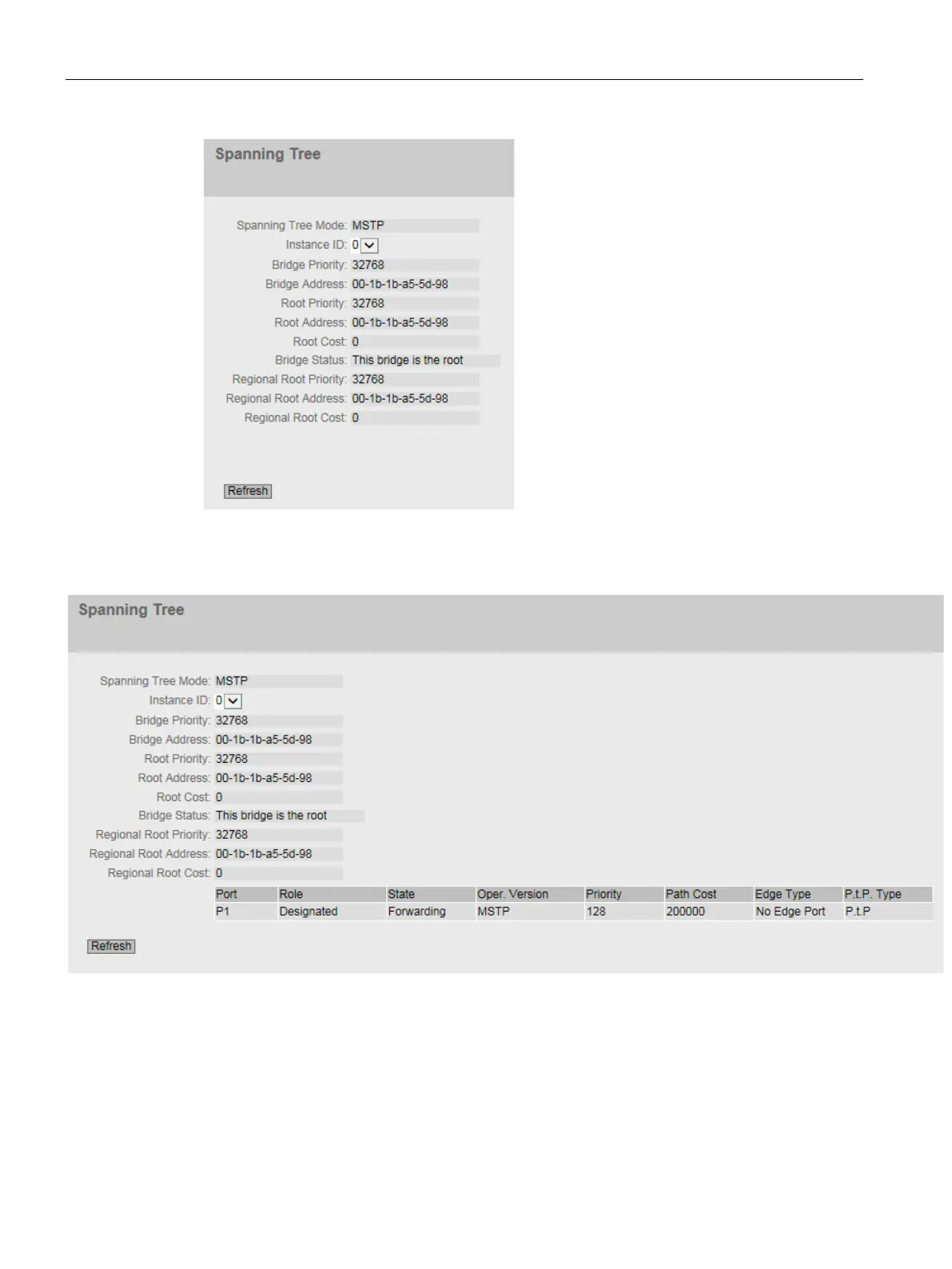 shown in the table. The information shown depends on the Spanning Tree mode.