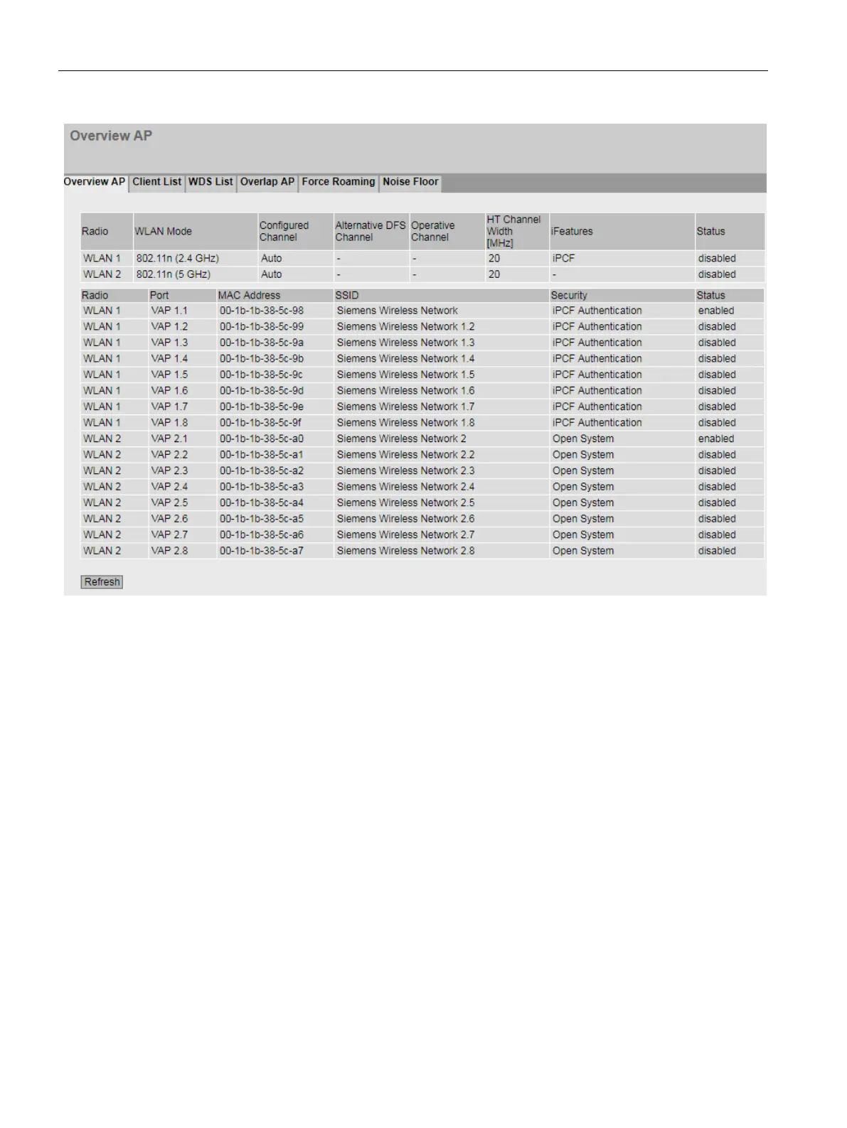 Shows the available VAP interfaces.
