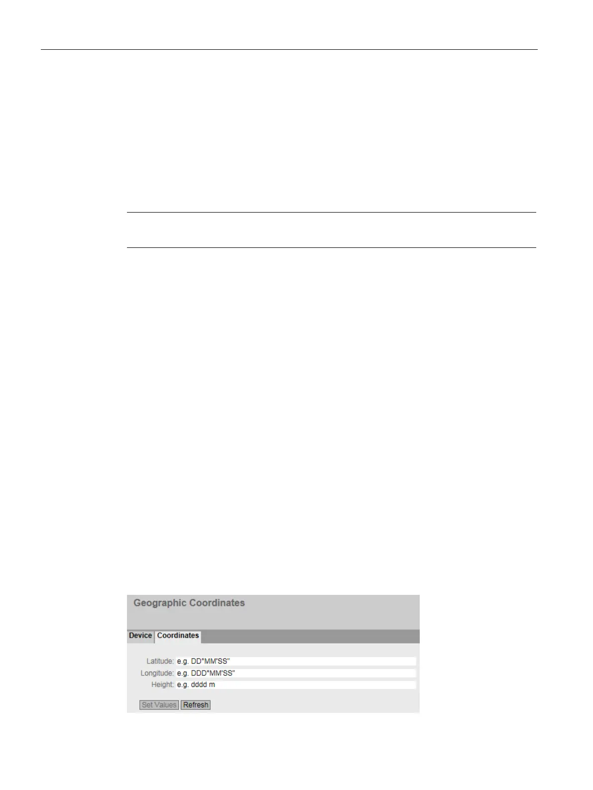 coordinates of these devices are normally displayed directly and only need to be entered in