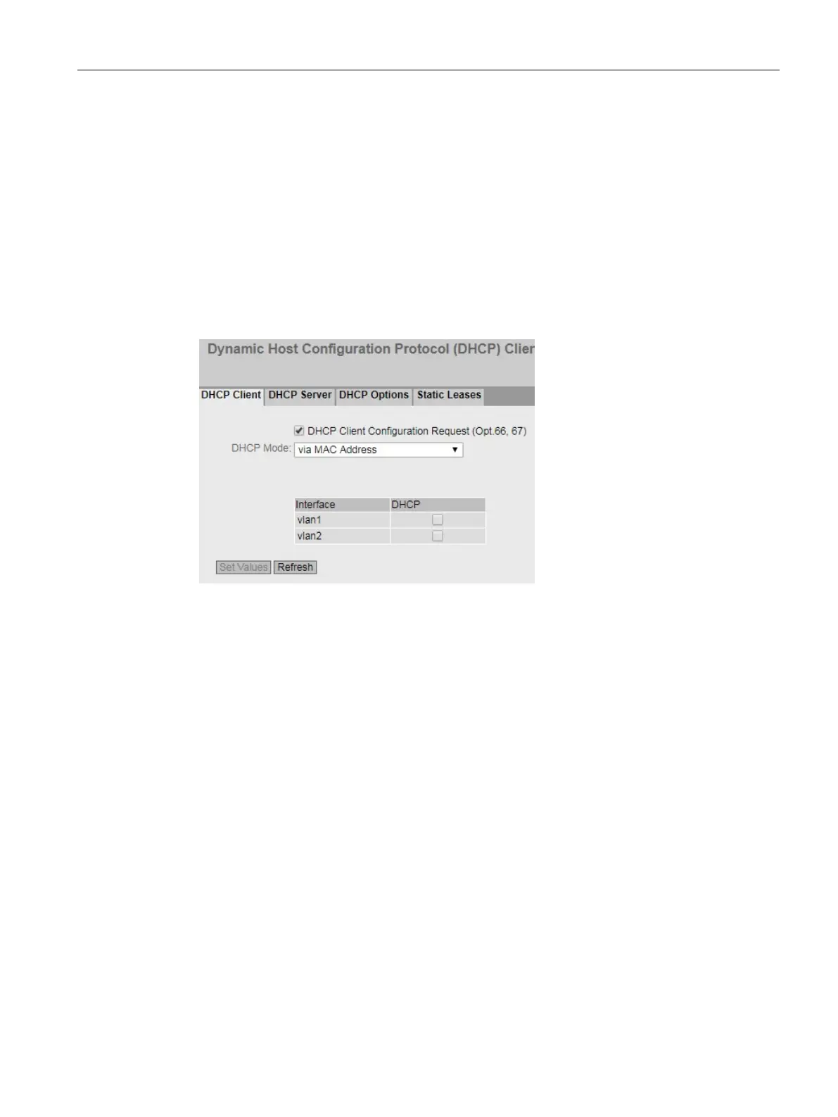 Select the DHCP mode from the drop-down list. The following modes are possible: