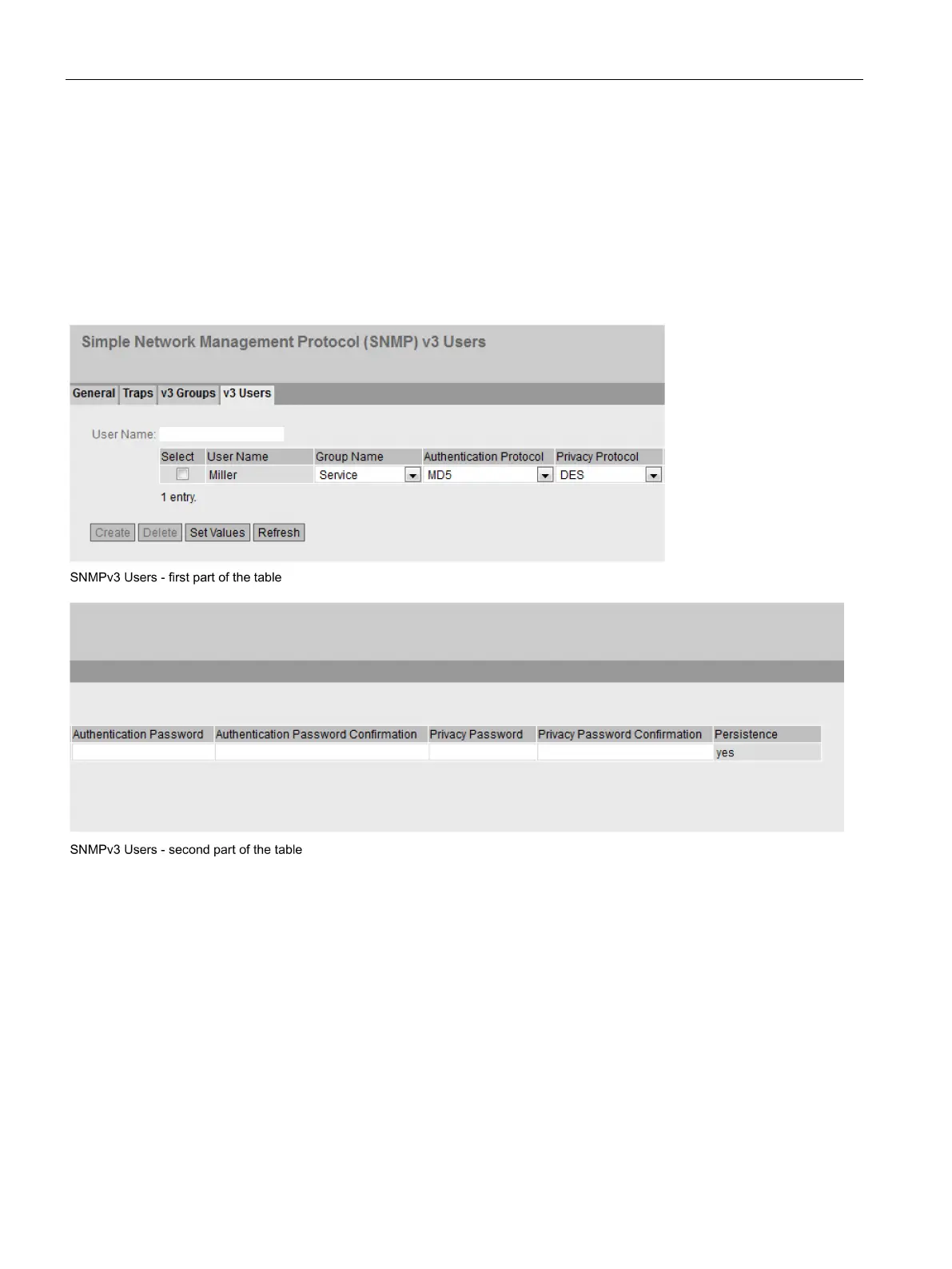 On the WBM page, you can create new SNMPv3 users and modify or delete existing users.