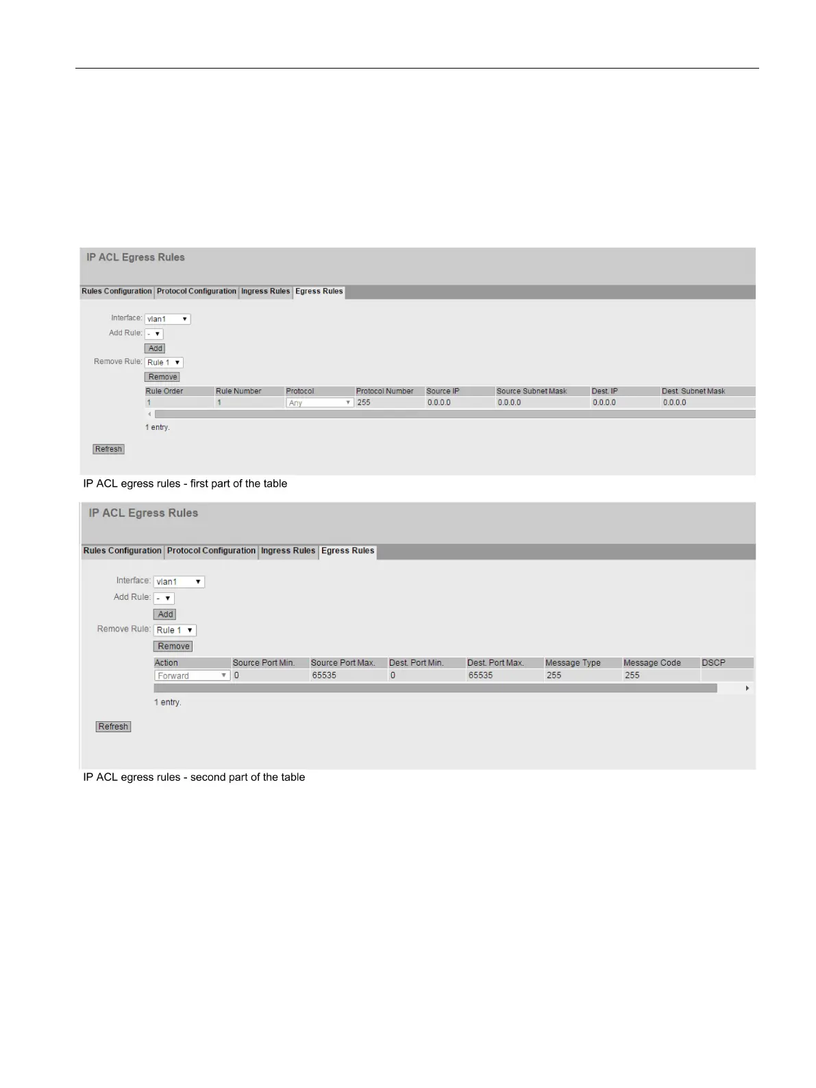 On this page, you specify the ACL rules according to which outgoing frames are handled by