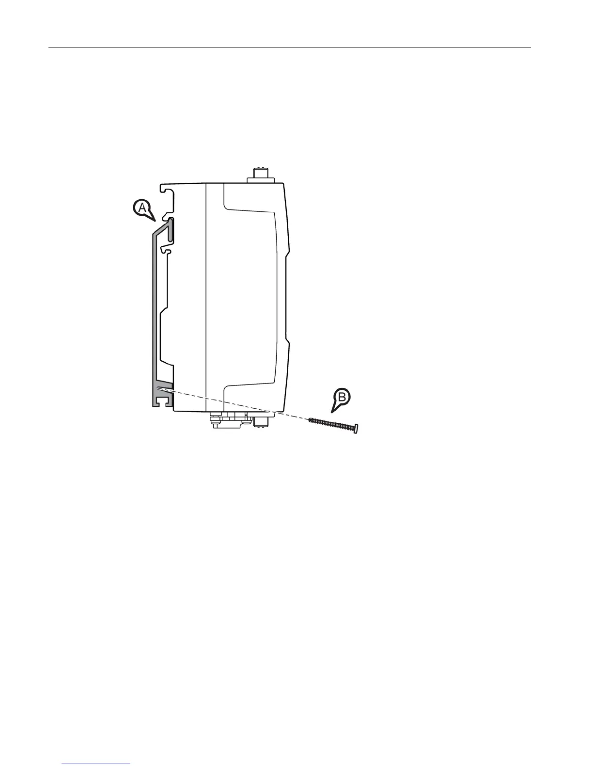 1. Place the device on the upper edge of the S7-300 standard rail (position A).