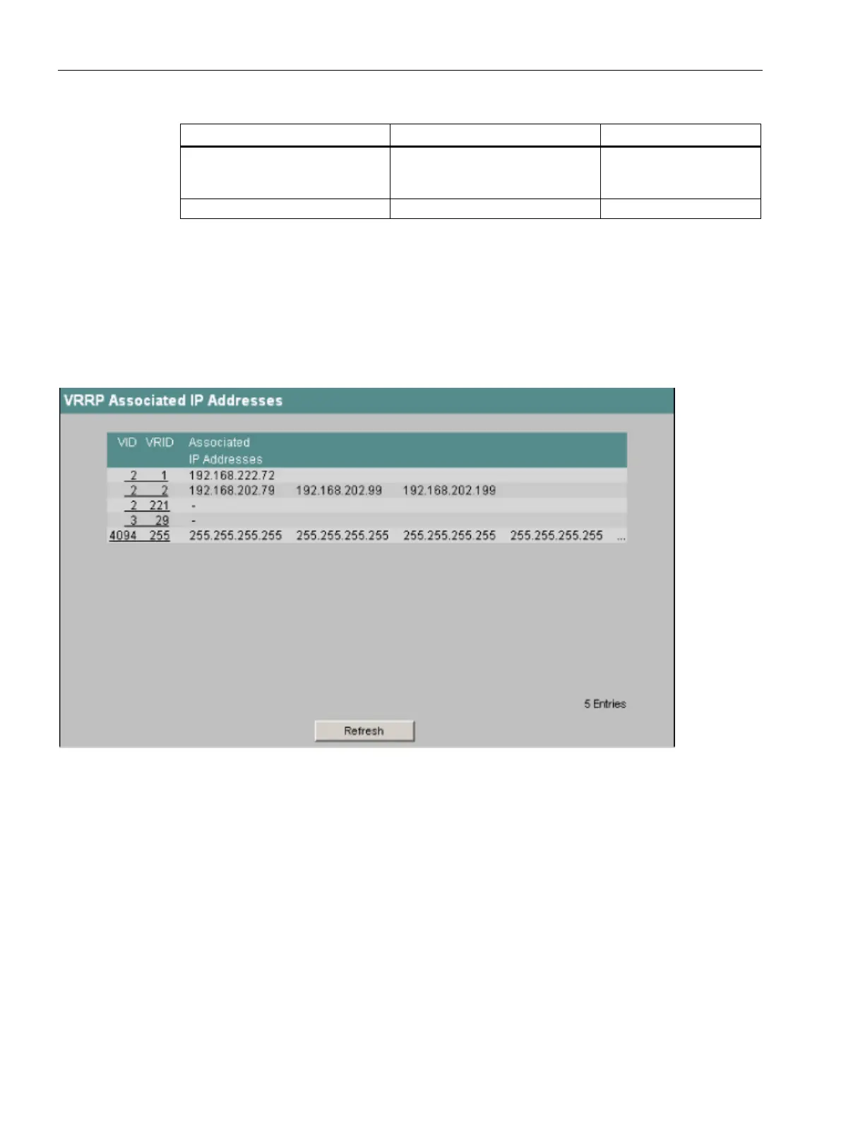 In this menu item, you can view the redundant IP addresses of the virtual routers.