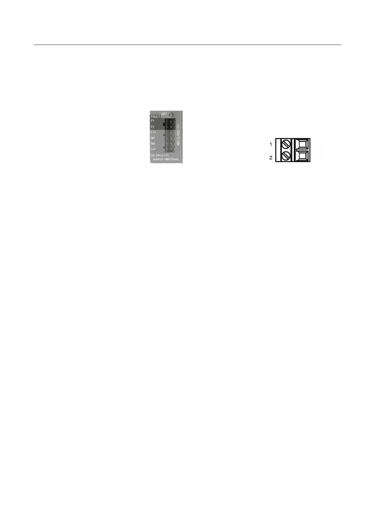 The signaling contact is connected to a 2-pin plug-in terminal block. The signaling contact