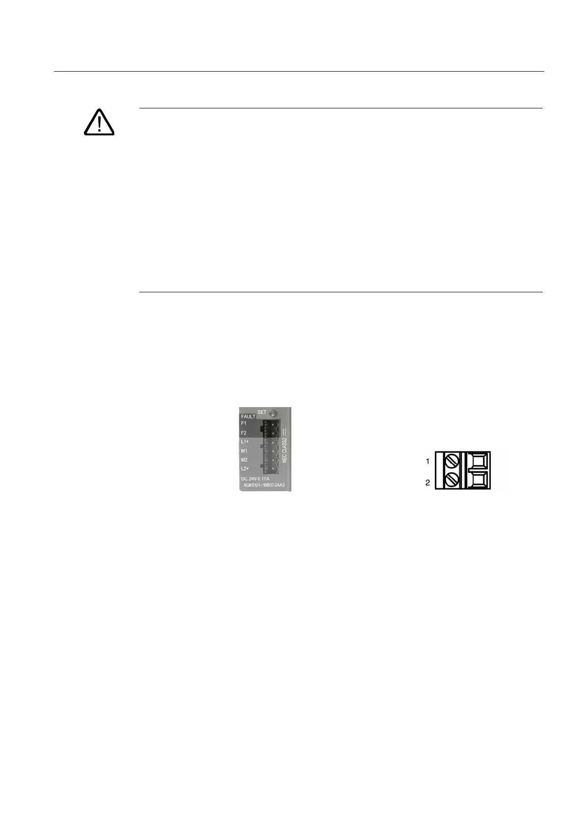 The signaling contact is connected to a 2-pin plug-in terminal block. The signaling contact