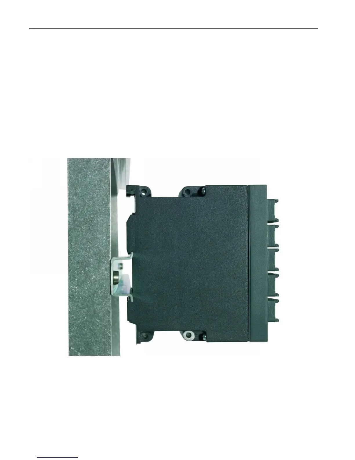 1. Place the second housing guide of the device on the top edge of the DIN rail.