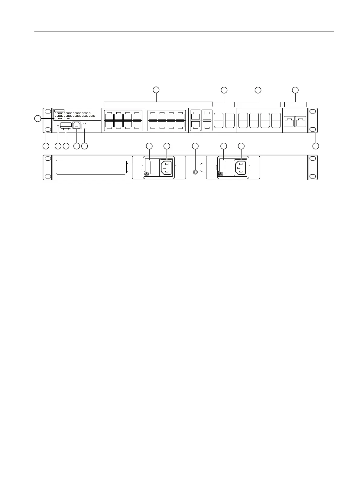 Figure 4-4 SCALANCE XRM334 100 to 240 VAC / 110 to 250 VDC with 12 SFP/SFP+ slots, front and back